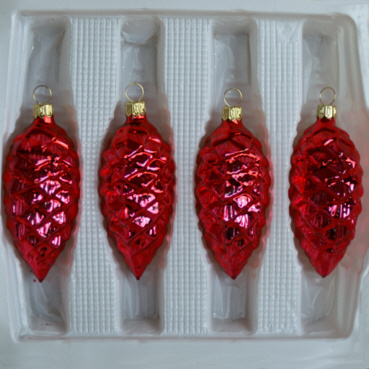 Tannenzapfen uni rot glanz, 4 Stück, L 9cm